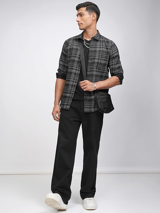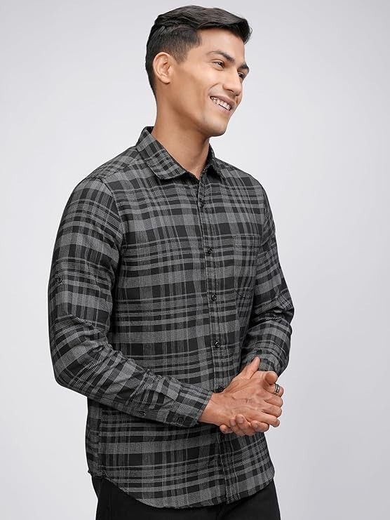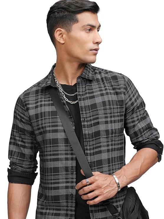 • ๐Ÿ“๐Ÿ›๏ธ Product Description: The menโ€™s black and grey checked casual shirt is a stylish and versatile wardrobe staple. Featuring a classic checkered pattern, it offers a modern slim fit that enhances the silhouette. Crafted from breathable fabric, it ensures all-day comfort.